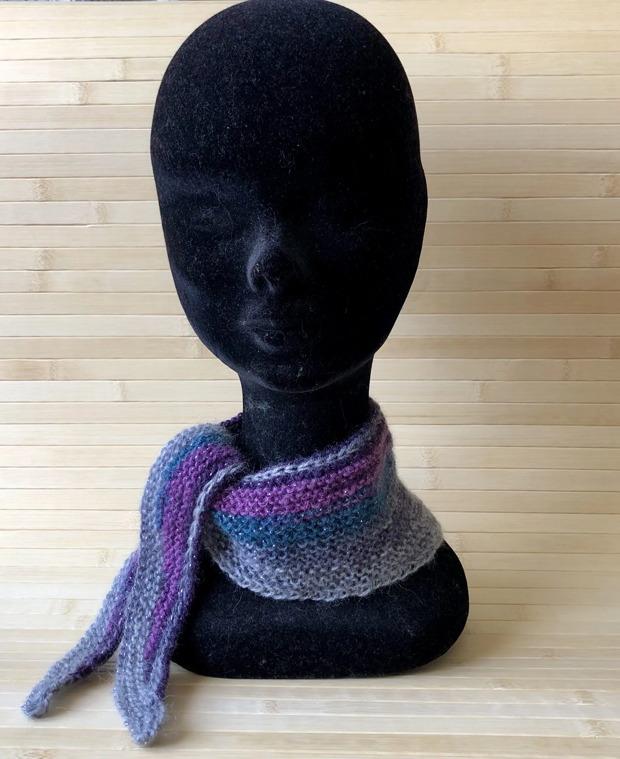 The baktus is a triangle scarf of Scandinavian origin, characterized by an elongated and tapered shape. Unlike a classic shawl, which often has a wider triangular or semicircular shape, the baktus is narrower and longer, allowing it to be easily wrapped around the neck without being cumbersome. Its processing is generally very simple: you start with a few stitches and progressively increase until half of the work, then decrease symmetrically.